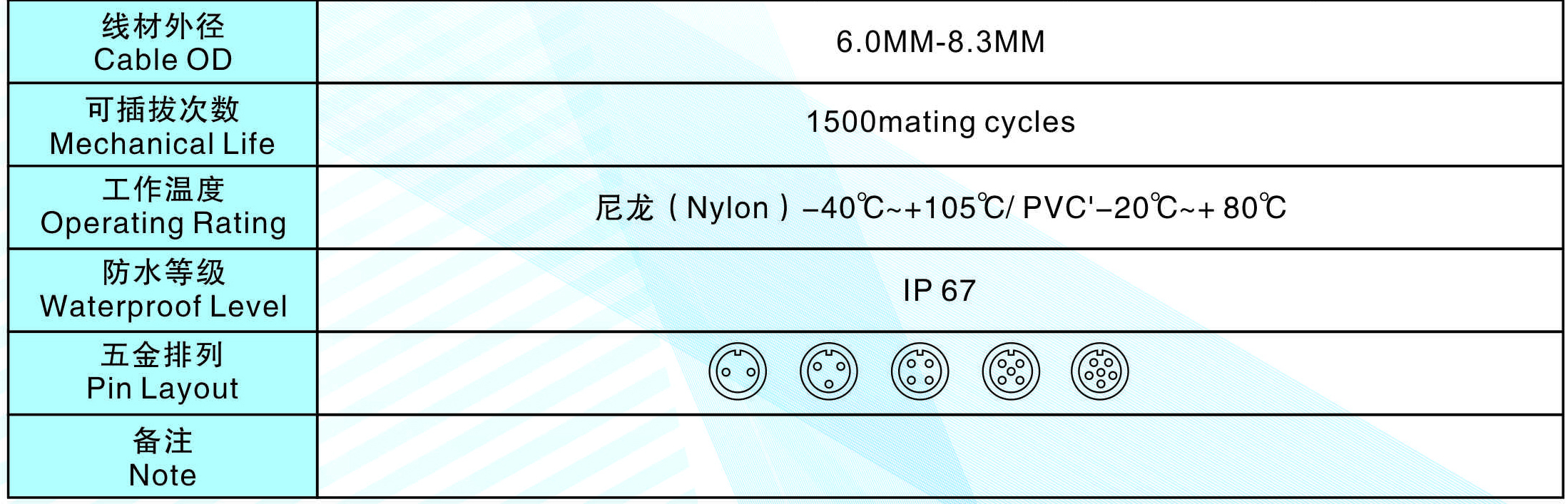 線材外徑(Cable OD):6.0MM-8.3MM