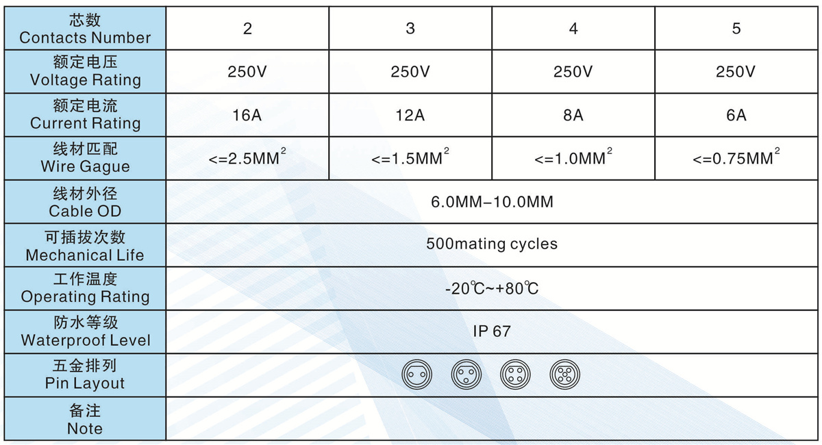 線材匹配(Wire  Gague):     <=2.5MM2       <=1.5MM2         <=1.0MM2         <=0.75MM2