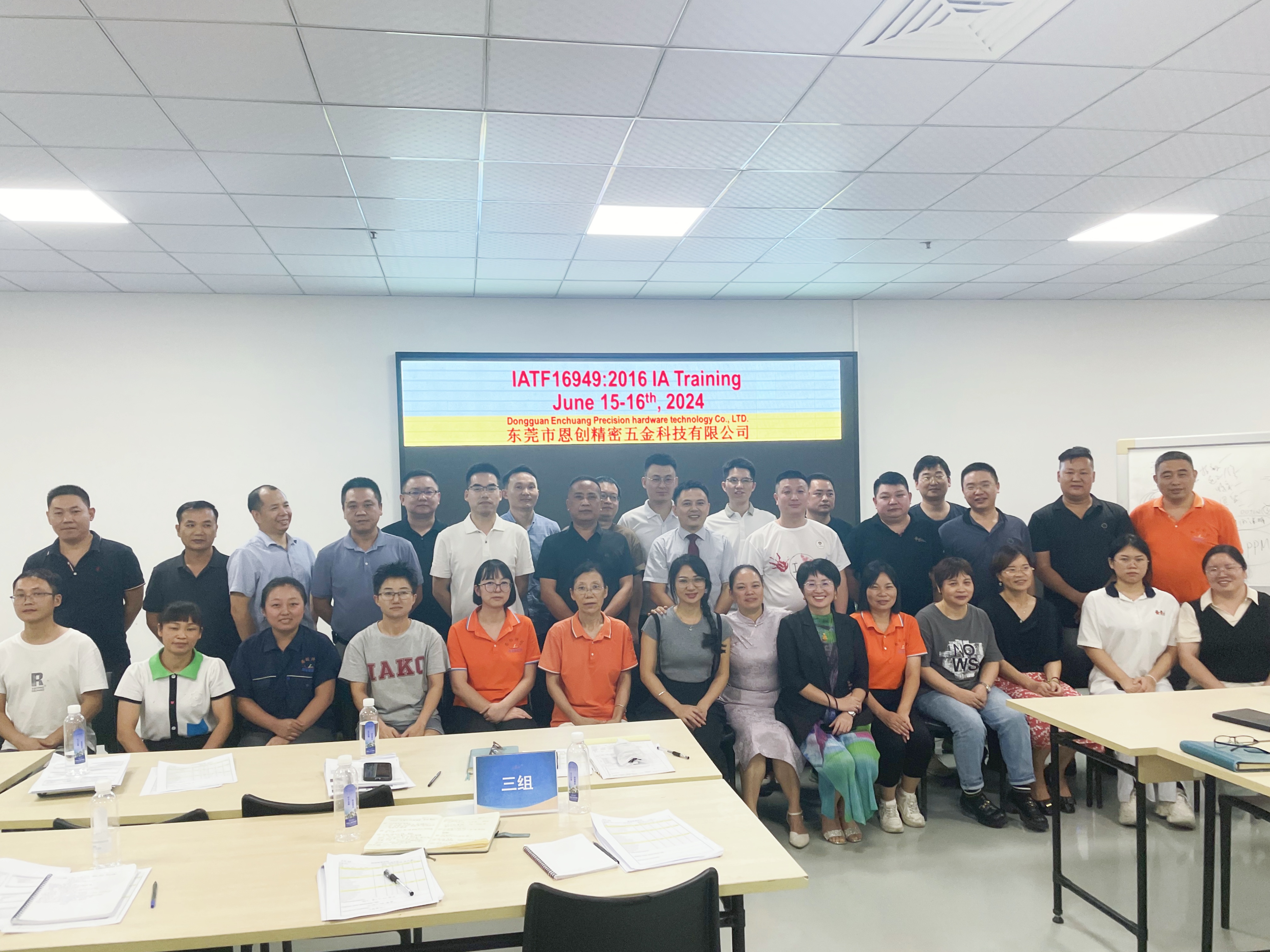 2024 年 6 月,恩創科技積極行動,精心組織內部中高層管理人員,邀請專業的指導老師,開展了為期兩天的 IATF16949 汽車行業質量管理體系內部審核員培訓。此次培訓,恩創科技所有管理層人員全員參與,分兩批有序完成培訓課程。在結業之際,更是進行了系統的考評測試,以檢驗學習成果,確保培訓質量。