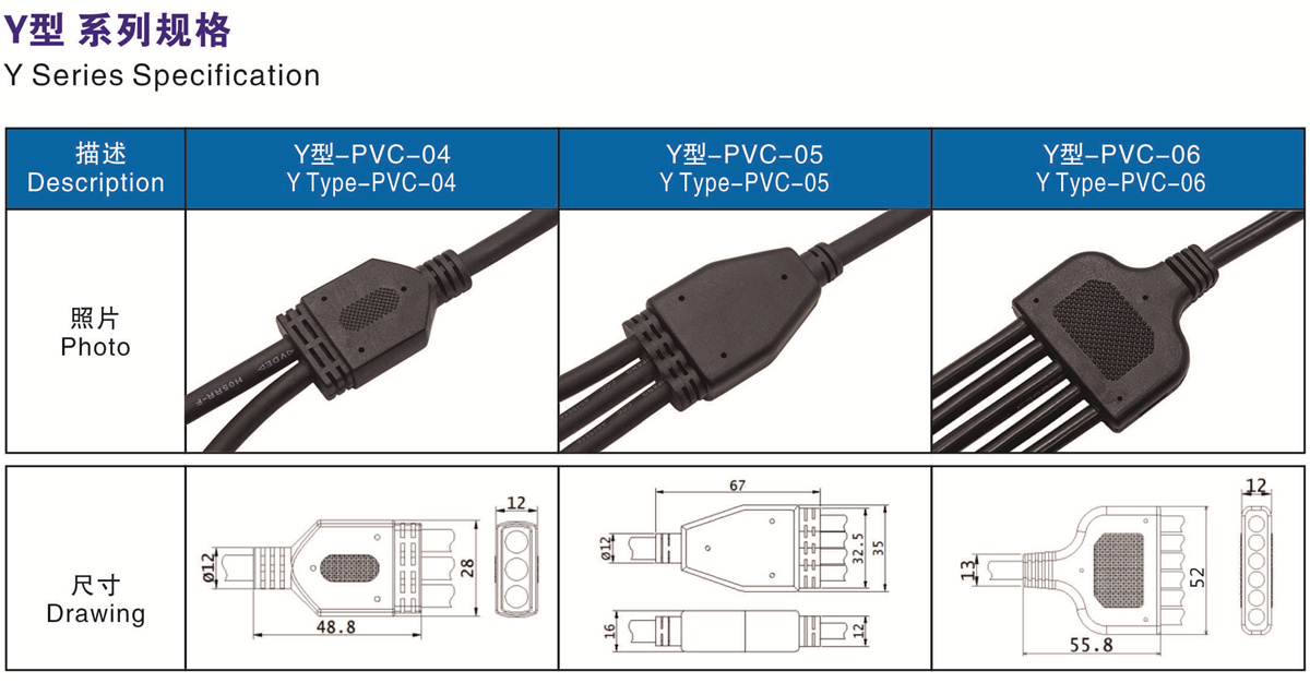 支線外徑(Branch Cable Gague): Max6.8mm Max6.8mm Max6.2mm